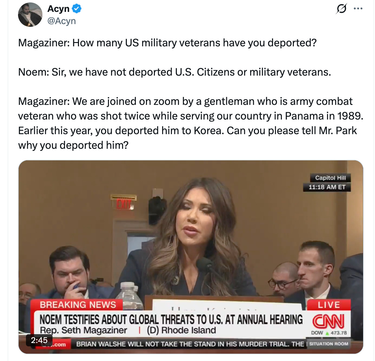 In addition to deporting immigrants, Kristi Noem and the DHS have deported citizens, including veterans. Noem, who was thrown under the bus recently by the Department of Justice and blamed for disobeying a judge’s order, was humiliated, mocked, and revealed to be a degenerate liar in a House committee hearing. It got so bad that she excused herself to attend a meeting that had already been cancelled. They can’t even lie competently, folks.