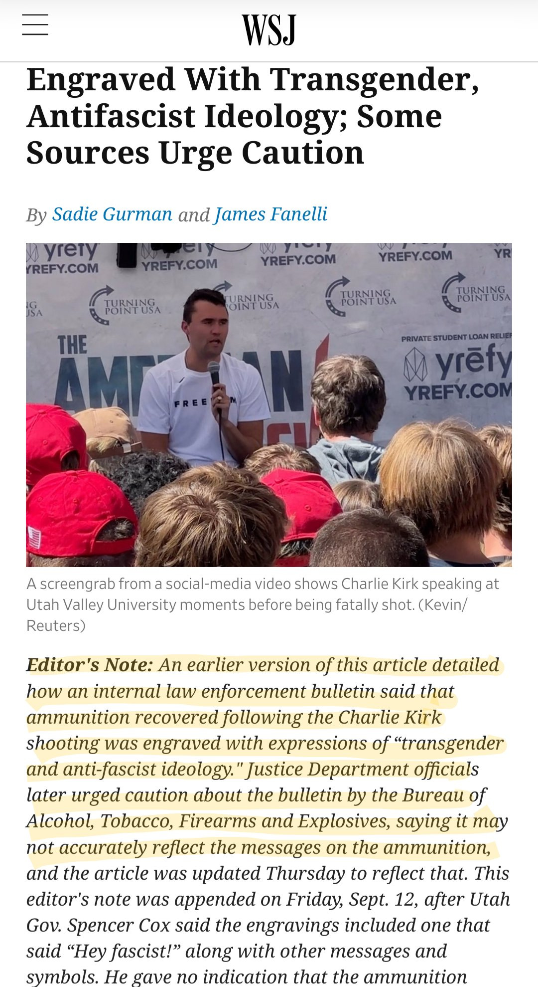 WSJ, The Guardian, Fox News, and Washington Post all failed and recklessly promoted bad-faith right-wing propaganda, which they later corrected or amended. Regardless, the damage was done and the fake news spread. Meanwhile, MAGA has unleashed a campaign of retribution, censorship, and terror, and gone after anyone and everyone who has criticized Charlie Kirk. They’re going after teachers, Democrats, and getting media personalities, like Matthew Dowd and Karen Attiah, fired.